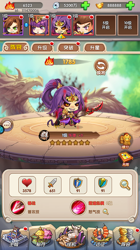 1、武将养成:玩家可以通过招募、培养和升级武将来提升自己的实力,不同的武将搭配可以产生不同的战斗效果。