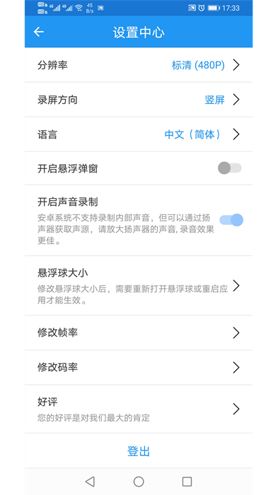 4. 有三个地方可以操作录制按钮,界面内圆形按钮+通知栏常驻按钮+悬浮弹窗