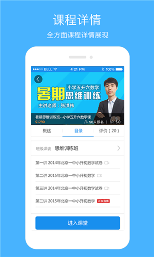 5.搜索:可按年级、按科目等条件找到中意的老师及课程;