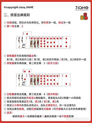 7、 升级规则:若一队获得上游和二游,则升三级;上游和三游升二级;上游和下游升一级。最终目标是过A,连续三局未能过A需重新从2开始打。