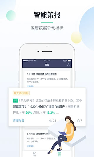 掌上神策能够帮助用户快速分析不同数据之间的关联,从而找出产品需要改进的地方,进而提升流量点击率,让商品获取到更多的客户,软件不仅可以定位异常数据,还会自动生成每日策报,通过大数据的形式来解决企业诸多难题,非常适合运营营销人员使用。