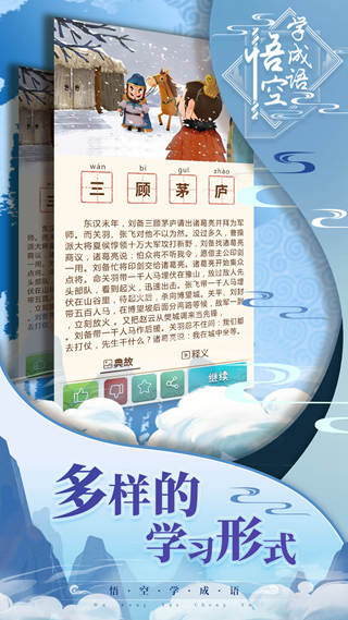 悟空学成语是专为孩子所打造的趣味学习app,可通过故事或图片等多种形式来了解成语的含义,从而让中小学生了解诸多经典文化,并且还有同义词、反义词及出处等各种知识延伸,从点到面进行扩展,有效激发孩子学习的兴趣,不仅让语文水平得到提升,还能培养其自主学习的能力。