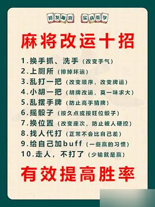 开局摸几轮后,快速扫一眼手牌:如果80%以上是同一花色,就可以考虑放弃杂牌,专注留同花色的顺子和刻子。