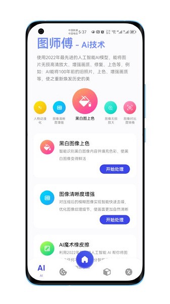 2、Ai相关:黑白图像上色、图像清晰度增强、Ai橡皮擦、Ai图像去水印、图像无损放大等;