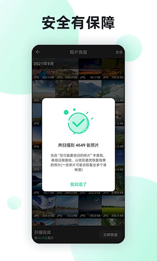 全面扫描手机中的照片、视频等数据,将扫描到的照片图片导出恢复到相册中;