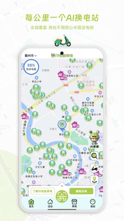闪电蛙换电是一款两轮电车电池更换工具,通过独特的模式,为两轮电动车用户提供服务,告别充电难、充电贵、充电时间长问题充电安全隐患等问题。使用时,可以通过 APP 快速找到附近换电站,几秒即完成换电,为绿色出行保驾护航,助力智慧城市打造。