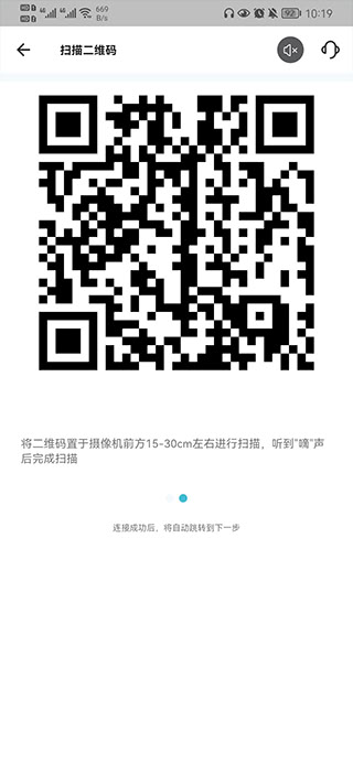 4、将手机连接到WiFi网络,此时手机屏幕上会出现一张二维码。将该二维码放置在摄像头前,让摄像头扫描后,即可完成绑定。