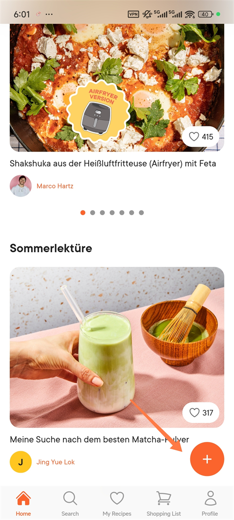 4、点击【+ 号】可分享自己的烹饪作品。