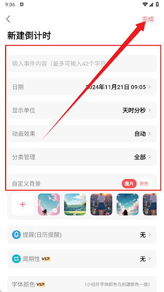 3、点击中央加号按钮进入新建倒计时编辑页面