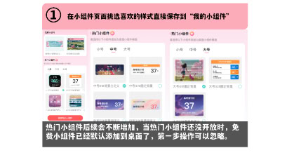 2、在组件列表中选择对应功能模块(部分机型称为小窗口或桌面插件)