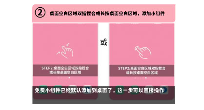 1、通过桌面双指捏合或长按操作触发小组件添加界面