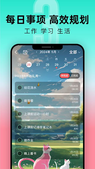 2、支持待办事项清单管理与多维度提醒设置(铃声/弹窗/震动)