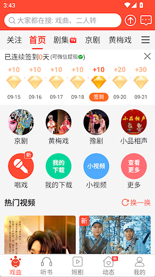 4、利用推荐:多浏览智能推荐内容,能发现更多符合自己喜好的戏曲资源,挖掘新的精彩。