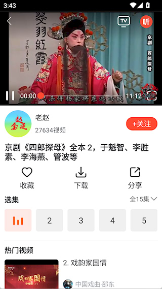 2、设置收藏:遇到喜欢的戏曲、广场舞等,点击收藏按钮,方便下次快速找到,还可订阅艺人获取更新。