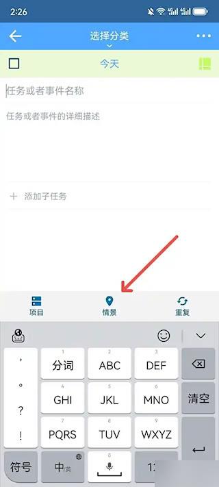 2、进入分类选择页面后点击情景图标选项