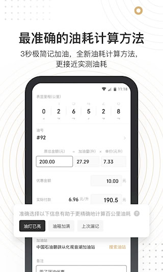 1、精准记录爱车油耗数据,通过简洁操作实现科学计算,结果比车载显示更准确