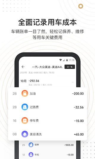 1、专注车辆全生命周期成本管理,通过多维度数据记录与分析,显著提升养车资金使用效率。