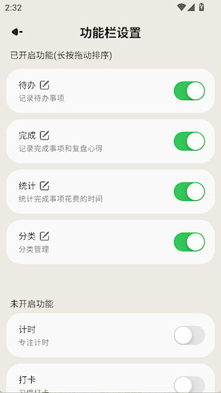 3、按需开启或关闭功能,拖动排序