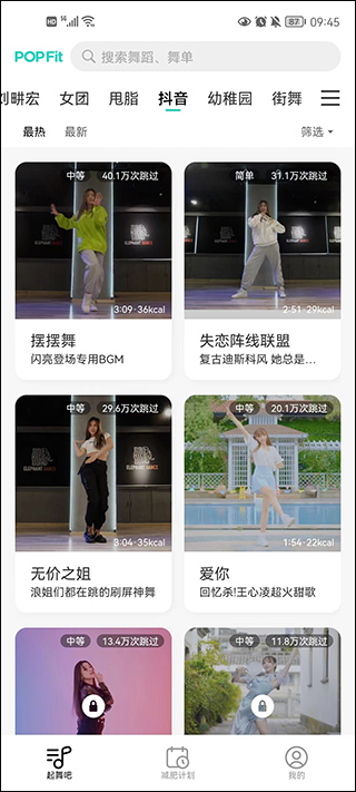 7、除基础健身素材外,还收录热门舞蹈,供用户学习。