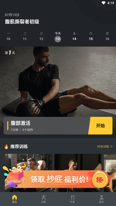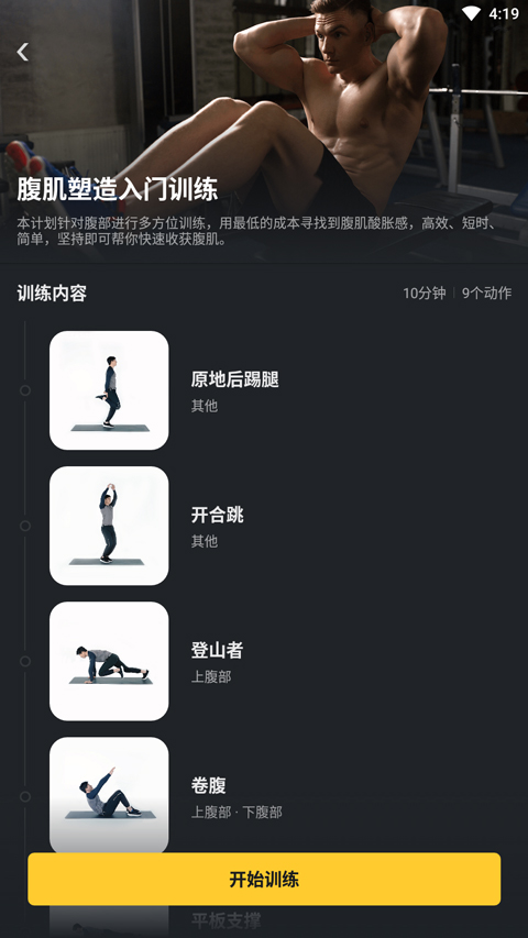 3、点击 “训练” 板块,此处包含多种腹部训练计划,覆盖不同训练需求;