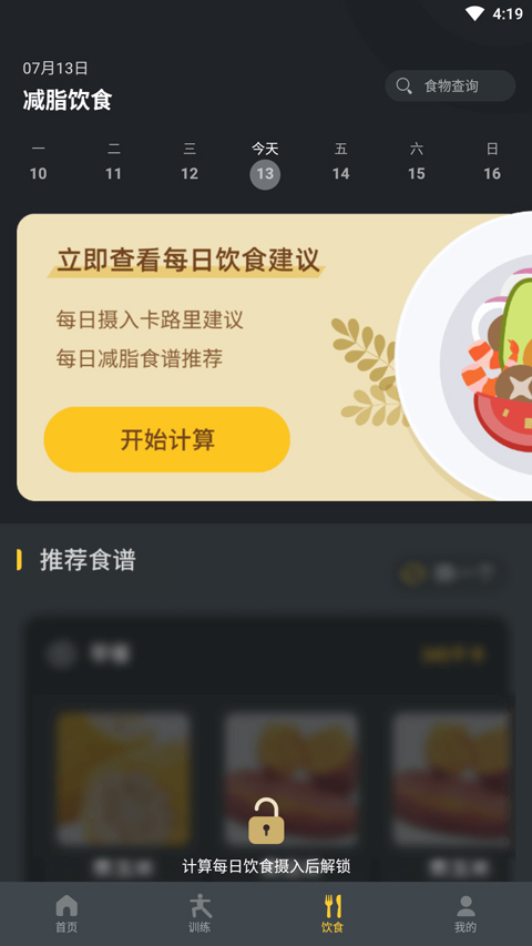 5、APP 同时提供合理饮食计划,辅助提升训练效果,助力达成目标;