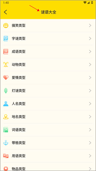 3、谜语库收录多种分类包括幽默谜题、汉字谜语、成语猜谜、动物谜题、节日灯谜及名人猜谜等丰富类型