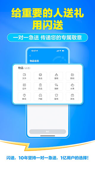 1、 提供一键下单服务,支持文件、礼品、生鲜食品等多种物品的即时递送需求。