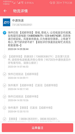 5、 内置"服务评价体系",可对快递公司配送服务进行满意度评分
