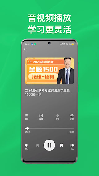 1、提供法律硕士考试全程精讲课程,涵盖民法、刑法、宪法等核心科目,配套权威教材与讲义。