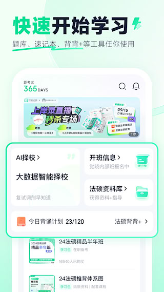 4、专设法硕背诵工具,基于最新《考试分析》开发千余题库,配备客观题体系图与五轮带背计划,提升记忆效率
