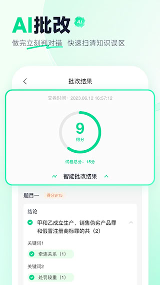 2、AI批改功能受到好评,能快速反馈主观题写作问题,提升答题规范性。