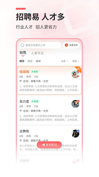 1、 提供智能职位发布系统,支持灵活设置薪资待遇、工作要求等关键信息。