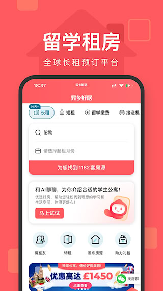 异乡好居是一款专注于为海外留学生提供租房服务的全球公寓预订平台。采用线上预订与专业顾问服务相结合的模式。留学生可以通过直观的搜索界面根据学校位置、租金范围、房型等条件筛选合适房源。配备具有海外生活经验的租房顾问团队,提供从看房咨询、合同解读到入住支持的全流程服务,有效解决留学生跨境租房的沟通障碍和信息不对称问题。