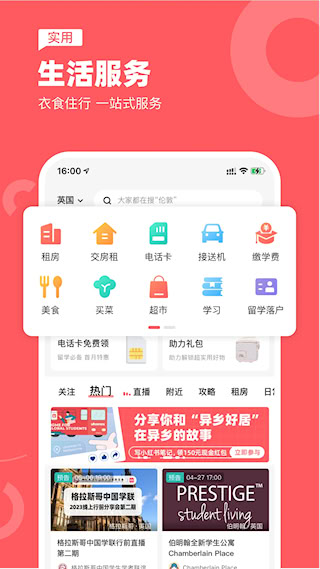 1、提供一站式海外生活服务,涵盖留学社区互动、生活信息获取及本地服务对接,满足多元需求。