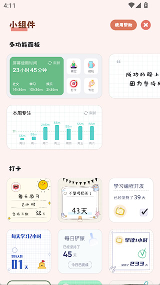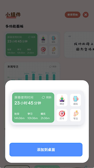 5、日常自律:日常生活中,通过打卡和限制分心功能,培养规律生活习惯,减少无意义行为。