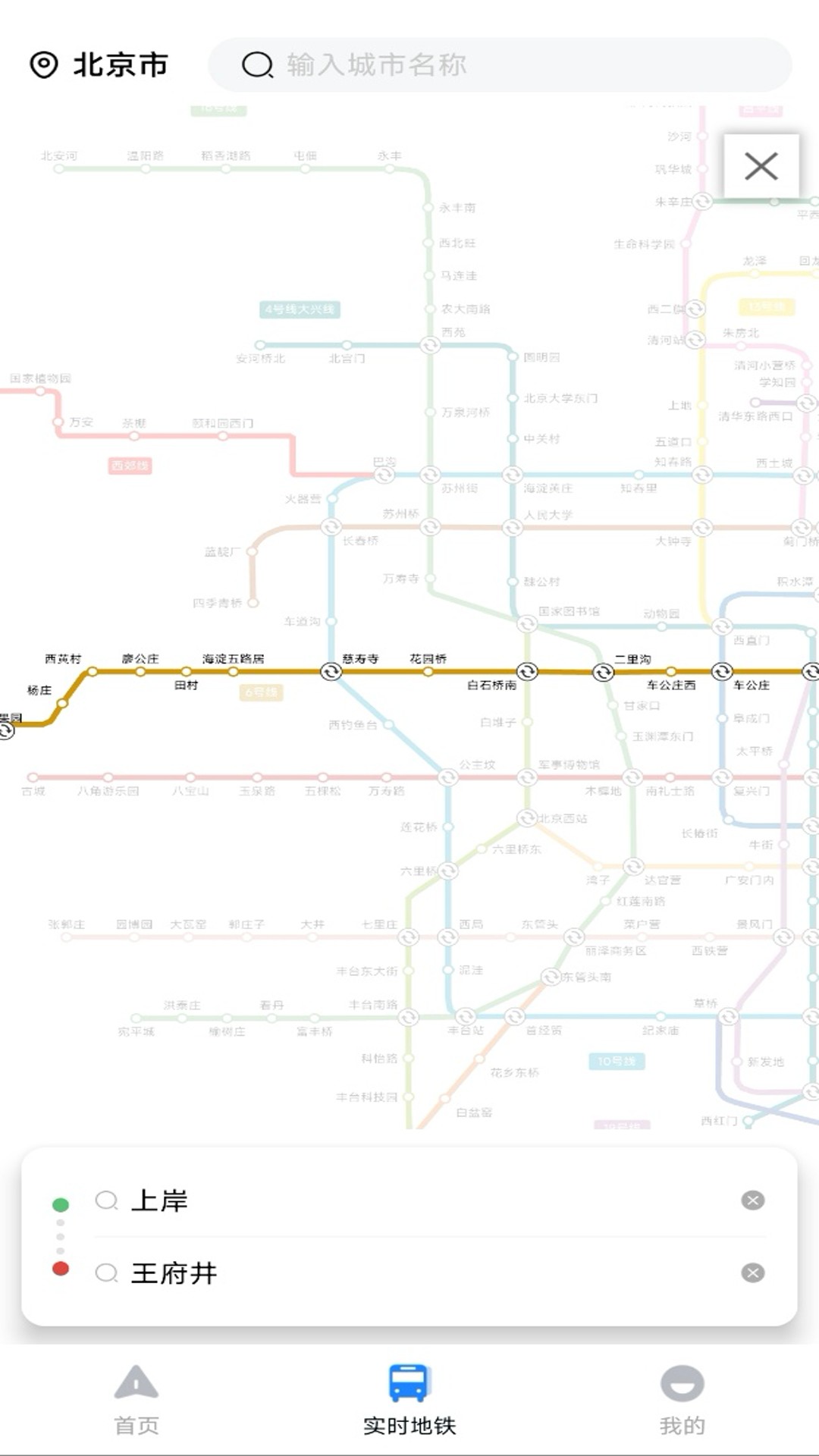 4、若选择公共交通出行,可切换至地铁、公交板块,软件已整合线路及班次时间,自动推荐最优换乘方案。
