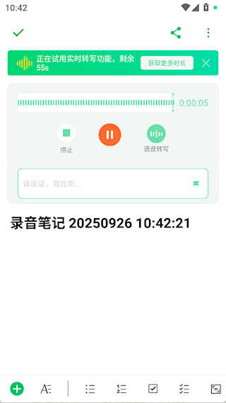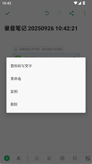 3、完成后能一键转写为文字,使用底部工具进行排版