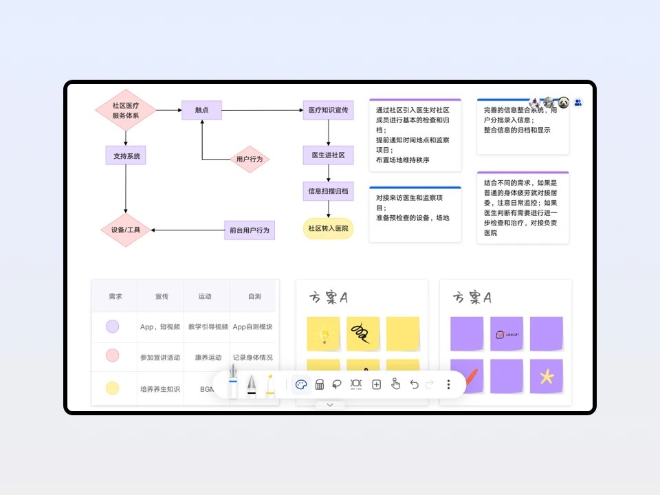 3、小组讨论:小组学习中,成员利用它记录讨论要点,随时编辑完善,辅助共同梳理思路,推动讨论深入。