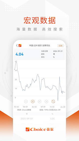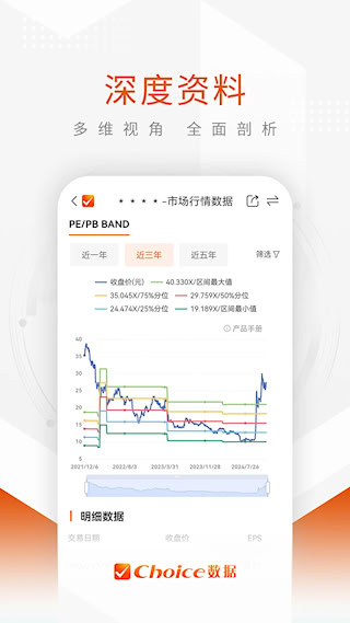 Choice数据是东方财富旗下专业的金融数据终端移动版本,为机构投资者与专业研究者提供决策支持工具。整合了全球交易所的实时行情数据与宏观行业数据库,引入人工智能技术进行智能投研分析。能将复杂的金融数据转化为直观的可视化分析报告。功能覆盖股票、债券、基金、期货等多资产类别,提供财务分析、估值模型等专业工具。