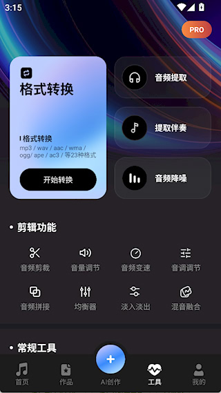 2、工具界面有音频降噪、剪辑变速等多种功能