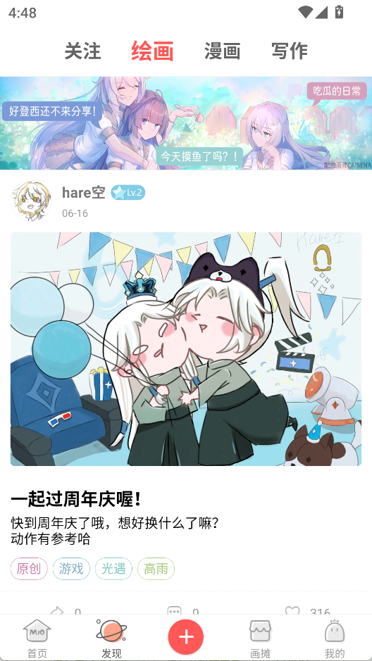 2、发现界面有更多绘画、漫画作品