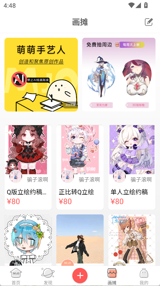 3、画摊界面能快速约稿指定风格