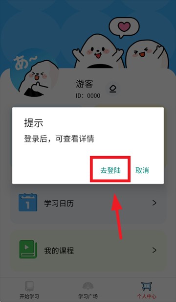 3、弹出提示界面后,选择【去登陆】选项进入登录页面。