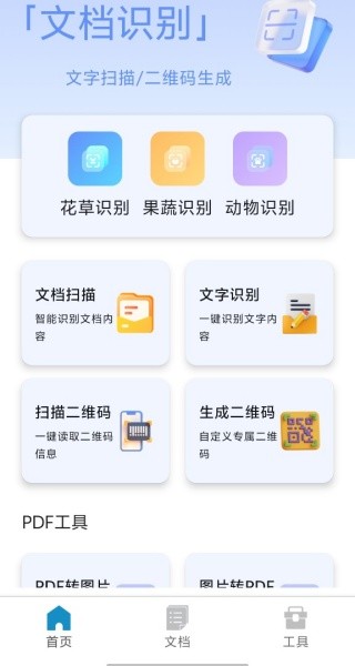 2、花草识别、果蔬识别、动物识别、文档识别功能都可以免费体验;