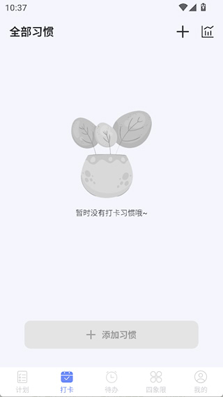 2、习惯界面能创建打卡任务,定时提醒打卡