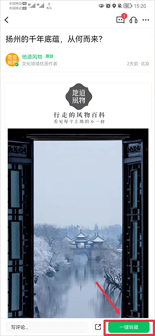 2、进入文章详情页后,点击右下角的 “一键转藏” 按钮;