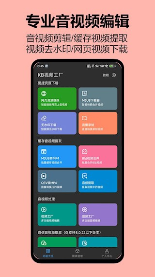KB视频工厂是一款视频处理工具,整合多种音视频处理功能,可以应对特殊格式转换、分段内容合并等常见场景。界面设计简洁直观,操作流程简便,无需专业知识就能顺利使用,无广告干扰、处理过程迅速、输出结果准确,是日常音视频处理的实用选择。
