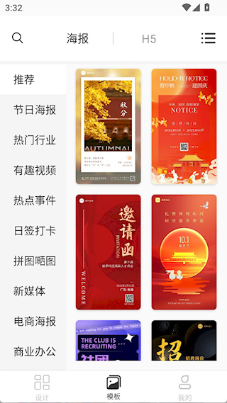 2、模板界面有多种类型的设计模板