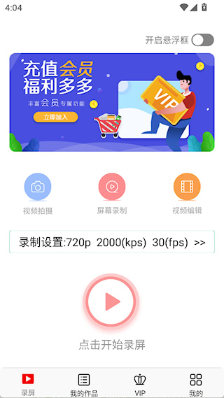 2、开启悬浮窗控制:录制前启用悬浮窗,可在其他应用界面直接操作启停,无需切换页面。