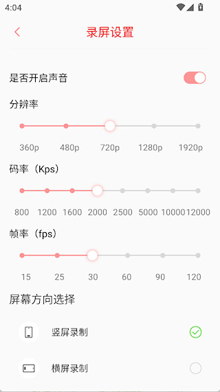 3、录制方向可选:开始前可依据内容选择横屏或竖屏模式,适配不同画面呈现需求。